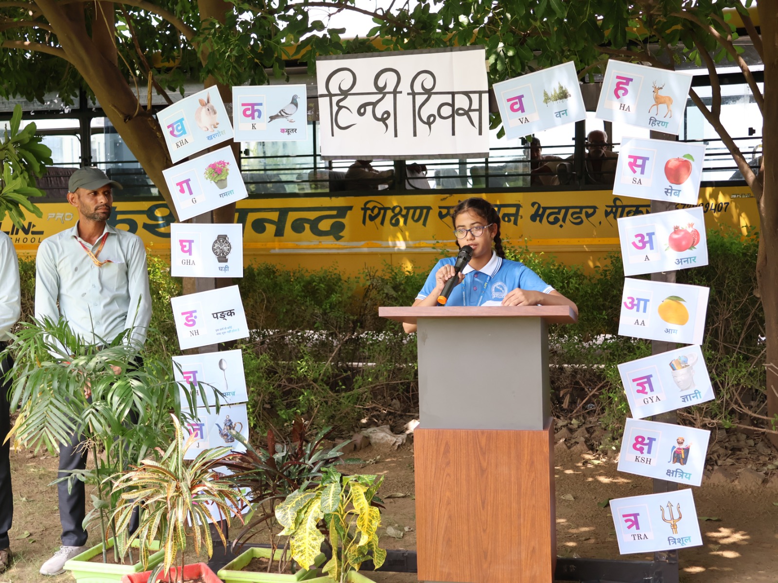 सीकर। एनएच 52 स्थित स्वामी केशवानन्द शिक्षण संस्थान समूह भढाडर सीकर में हिन्दी दिवस धूमधाम से मनाया गया। कार्यक्रम में मातृभाषा हिन्दी पर व्याख्यान देते हुए प्रधानाचार्य विजेन्द्र सिंह ने बताया कि हिन्दी हमारी मातृभाषा है जो हमें संस्कार देती है आगे बढने की प्रेरणा देती है। संगोष्ठी के माध्यम से हिन्दी वाद-विवाद प्रतियोगिता आयोजित की गई जिसमें छात्र-छात्राओं ने बढ-चढकर अपने विचार रखे एवं कविताओं के माध्यम से हिन्दी भाषा का गुणगान किया। इस अवसर पर संस्थान निदेशक रामनिवास ढाका, सहनिदेशक गोपाल सिंह ढाका, चैयरमैन सुरेन्द्र सिंह, प्रधानाचार्य शांतिप्रसाद नेगी, प्राचार्य ललित किशोर तंवर, प्राचार्य महेश कुमावत, प्राचार्य जगदीश सोलंकी सहित प्रबंधन सदस्य एवं बच्चें उपस्थित रहे।
