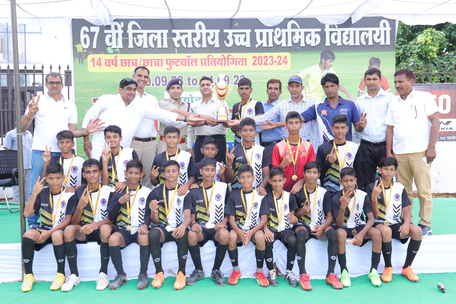 सीकर NH-52 स्थित स्वामी केशवानंद शिक्षण संस्थान भढ़ाडर सीकर के सर्पोट्स काॅम्पलेक्स में चल रही 14 वर्ष छात्र/छात्रा फुटबाॅल प्रतियोगिता के फाइनल मुकाबले में केशवानंद की छात्र टीम ने प्रिंस एकेडमी से 2-1 से जीत लिया इससे पहले छात्राओं के मुकाबले में केशवानंद को उपविजेता का खिताब मिला इस तरह एक ही दिन में 2 ट्राॅफी केशवानंद के नाम रही विजेता टिमो के उत्साहवर्धन एवं पुरस्कार वितरण हेतु सीकर SDM जय कोशिक एवं नवनियुक्त RPS सर्किल ऑफिसर सीकर अनुज कुमार पहुँचे। इस अवसर पर संस्था निदेशक रामनिवास ढ़ाका चेयरमेन सुरेश सिंह सहनिदेशक गोपाल सिंह प्रिंस एजु. हब के CMD राजेश ढिलन, दिनेश सैनी, शिक्षा विभाग की तरफ से बलवीर सिंह, जोवियल स्कूल के इंचार्ज लतिका ढ़ाका खेल प्रभारी राहुल ढ़ाका सलेक्टर विद्याधर सिंह एम्पायर मनोज सिंह, शारिरीक शिक्षक सुमेर सिंह कोलिड़ा, प्रमोद भारद्वाज, रफीक खान सहित टीम प्रभारी एवं हजारों की संख्या में खेल प्रेमी उपस्थित रहे।