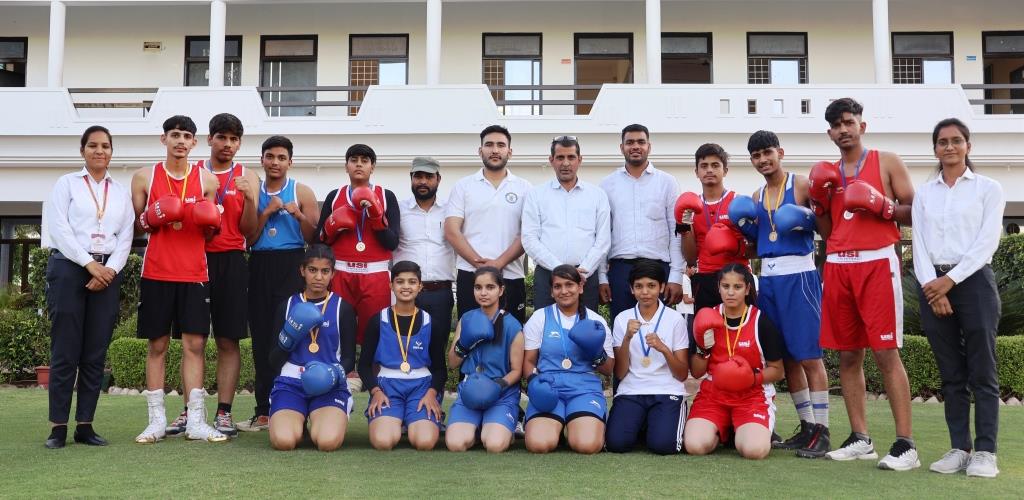 सीकर! स्वामी केशवानन्द शिक्षण संस्थान, भढ़ाडर सीकर के विद्यार्थियों ने यूथ एण्ड जूनियर बॉक्सिंग चैम्पीयनशिप बालक बालिका 2024 का आयोजन राजस्थान सबलपुरा बॉक्सिंग क्लब के तत्वाधान में आयोजित की गई। जिसमें विद्यालय के विद्यार्थियों ने सीकर जिले के सभी स्कूलों में अपना परचम 21 मैडलों की बौछार के साथ प्रदर्शित किया। इसमें मैडल प्राप्त करने के पीछे कोच श्री लोकेश मलिक के निर्देशन एवं मार्गदर्शन की अहम भूमिका रही। इस प्रतियोगिता में विभिन्न आयु एवं वजन के वर्गो में कुल 10 गोल्ड मैडल प्राप्त करने वाले आशिष चौधरी, पंकज चौधरी, लक्की चौधरी, वंश, सुमित कुमार, तंनु खिचड़, प्राची चौधरी, शालिनी चंदेल, प्रतिभा, करिश्मा ने गोल्ड मैडल प्राप्त किये। इसी श्रृंखला को आगे बढ़ाते हुये 8 सिल्वर मैडल जिसमें आकांक्षा व्यास, योगिता, रिया, धर्मिष्ठा, वंशिका चौधरी, दितांश, दर्शिल, सार्थक ने प्राप्त किये। ब्रॉंज मैडल पर तीन बालकों ने जोनित, अनिल, अंकित धायल ने कब्जा किया। संस्थान चेयरमेन सुरेन्द्र सिंह ढ़ाका, संस्था निदेशक श्रीमान रामनिवास ढा़का सह निदेशक गोपाल सिंह ढ़ाका एवं खेल प्रभारी राहुल सिंह ढ़ाका ने सभी बॉक्सर को बधाई प्रेषित की। इस दौरान विद्यालय के प्रधानाचार्य डॉ. विजेन्द्र सिंह, अन्य ऑफिस कर्मचारी रफीक खान, अनु कंवर एवं आकांक्षा आदि मौजूद रहे