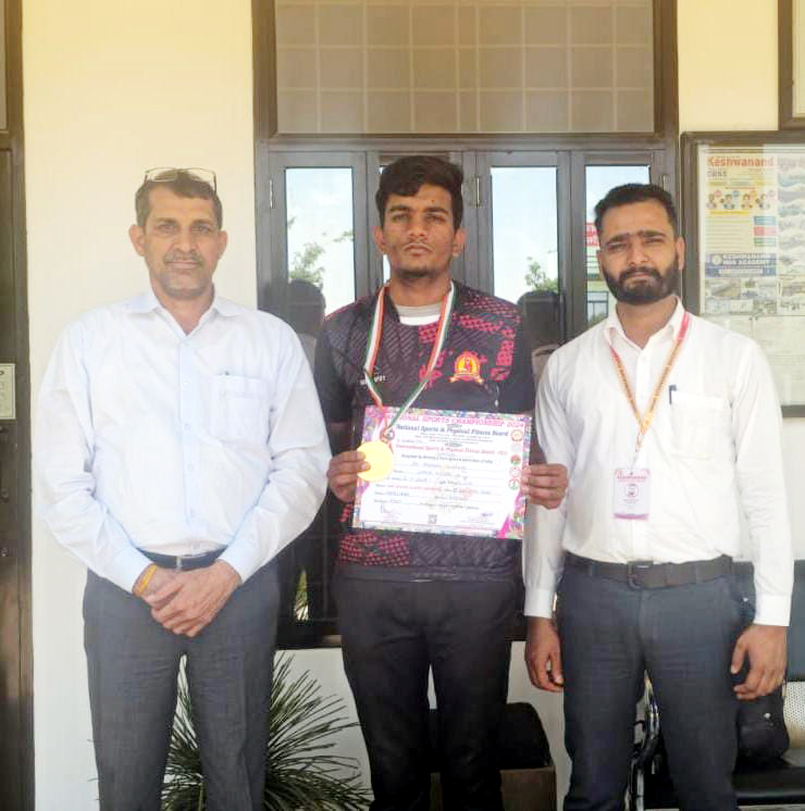 सीकर। एनएच 52 स्थित स्वामी केशवानन्द शिक्षण संस्थान समूह भढाडर सीकर की शाखा स्वामी केशवानन्द कॉन्वेंट स्कूल के कक्षा 12 के छात्र जयप्रकाश गोसाईवाल पुत्र श्रीकृष्ण ने मिनीस्ट्री ऑफ यूथ अफेयर एंड स्पोर्ट्स बोर्ड भारत सरकार के तत्वावधान में नेशनल स्पोर्ट्स एंड फिजीकल फिटनेश बोर्ड द्वारा में दिनांक 26 अप्रैल से 28 अप्रैल तक पानीपत हरियाणा मे आयोजित स्केटिंग नेशनल स्पोर्ट्स चैम्पियन 2024 में गोल्ड मैडल हासिल किया है। जो संस्थान के लिए बहुत की गौरव की बात है। इस प्रतियोगिता की अंर्तराष्ट्रीय प्रतियोगिता दुबई में आयोजित होगी। जिसमें संस्थान के छात्र जयप्रकाश भारतीय टीम में अपना दमखम दिखायेगें। इससे पूर्व भी छात्र में स्कूली गेम्स में राज्य स्तर पर स्केटिंग में ब्रोंज मैडल हासिल किया। छात्र के संस्थान आगमन पर संस्थान निदेशक रामनिवास ढाका, चैयरमैन सुरेन्द्र सिंह, प्रधानाचार्य शांति प्रसाद नेगी सहित प्रबधंन सदस्यों ने छात्र को बधाई प्रेषित की।