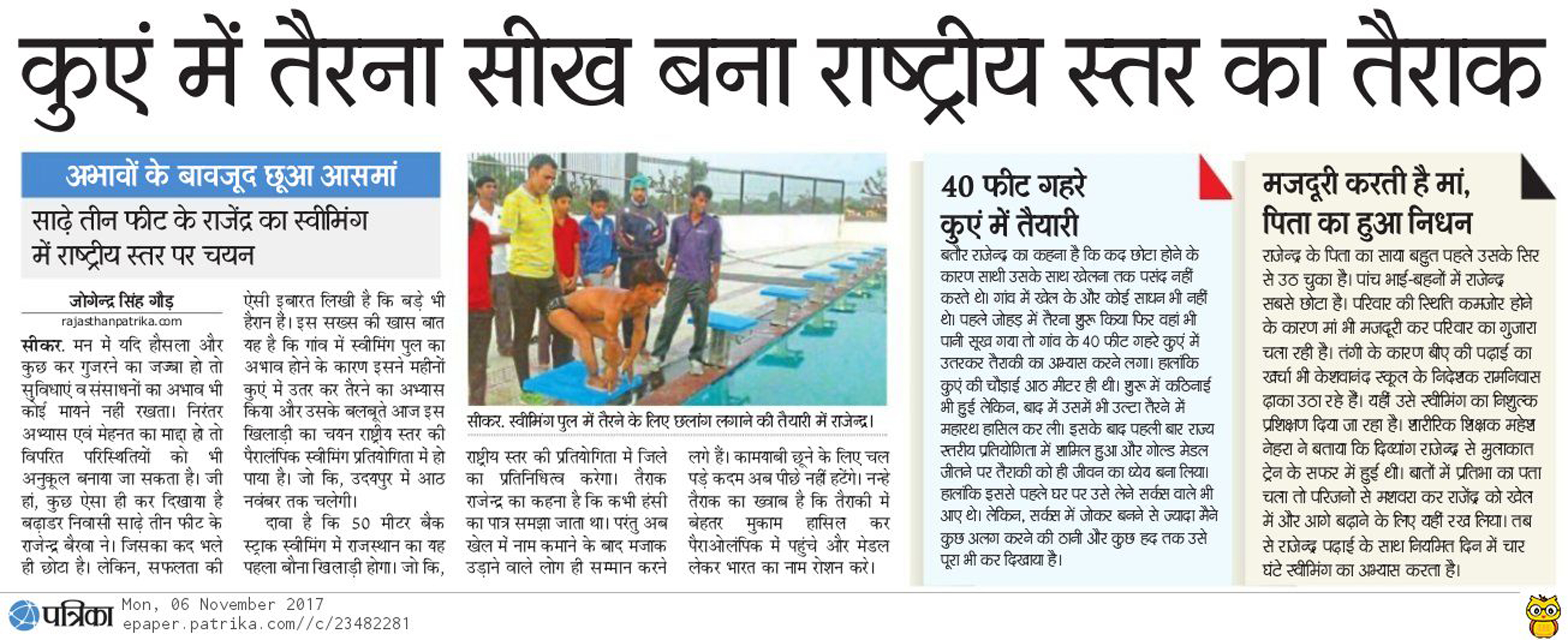 Notice : कुएं में तेरना सीख बना नेशनल तैराक