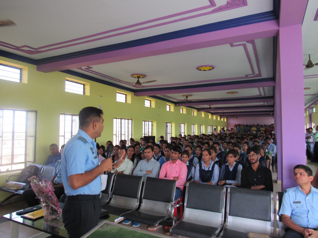 सीकर। एनएच 52 स्थित स्वामी केशवानन्द शिक्षण संस्थान में इंडियर एयर फोर्स के आला अधिकारियों की उपस्थिति में सेमीनार का आयोजन किया गया जिसमें मुख्य अतिथि के रूप विंग कमांडर हितेश पंवार तथा विशिष्ट अतिथि के रूप में स्क्वाड्रन लीडर श्वेता जैन, पंकज रावत, फ्लाइट लेफ्टिनेंट राकेश व नवनीत रहे। कार्यक्रम की अध्यक्षता संस्थान निदेशक रामनिवास ढाका ने की। इस असवर पर विंग कमांडर हितेश पंवार ने एयरफोर्स की ओर से नेशनल डिफेंस एकेडमी द्वारा पुरूष और महिला वर्ग के लिए भारतीय वायु सेवा में अवसरों की रूपरेखा के बारे में छात्रों को प्रोजेक्टर के माध्यम से जानकारी दी जिसमें द्वितीय विश्वयुद्ध, प्रथम विश्वयुद्ध तथा भारत छोड़ो आंदोलन, कारगिल युद्ध, लोगेंवाल युद्ध, कश्मीर युद्ध और 1965 और 1971 में हुए पाकिस्तान के साथ युद्ध की विस्तार से जानकारी दी और उसमें भारतीय वायु सेना की अहम् भूमिका की जानकारी छात्रों की दी । सेमीनार हाॅल में बैठे छात्रों एवं अध्यापकों को सेमीनार का दृश्य बहुत ही रोमांचक लगा। विंग कमांडर द्वारा पुछे गये प्रश्नों के उत्तर छात्रों ने पुरे आत्म विश्वास के साथ दिये। सही उत्तर देने वाले छात्रों को वायु सेना के अधिकारियेां द्वारा पुरस्कृत किया गया। इस अवसर पर संस्था निदेशक रामनिवास ढाका ने बताया कि इस प्रकार के सेमीनार के आयोजन से छात्रों में अपने कैरियर की सम्पूर्ण जानकारी मिलती है तथा जागरूकता का संचार होता है। इस अवसर पर प्रधानाचार्य चन्द्रशेखर कौशिक, नर्सिंग प्राचार्य महेश कुमावत, व्याख्याता सुनिता शर्मा, लक्ष्मण सिंह सहित स्टाफ उपस्थित रहे।